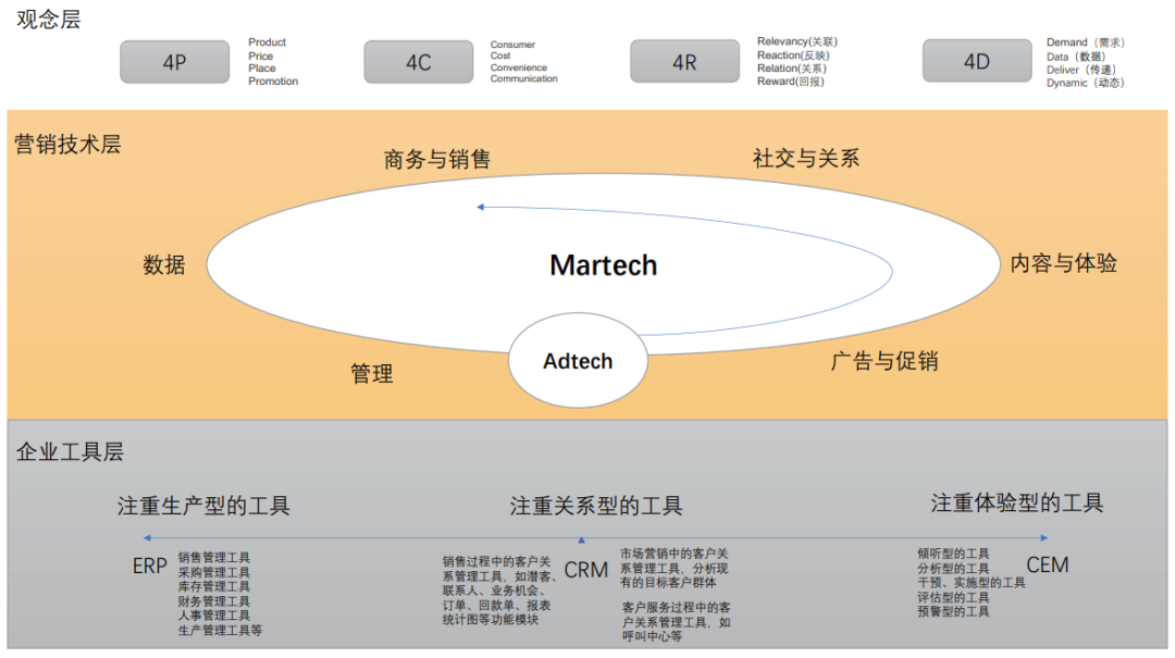 ERP、CRM、CEM之間不是線性的(de)(de)功能替(ti)代,它們都(dou)(dou)是企(qi)業(ye)在(zai)數(shu)(shu)字(zi)(zi)化(hua)背景下(xia),圍繞品牌后端制造、中端管(guan)理、前端營和銷(xiao),在(zai)不同的(de)(de)視角和目標下(xia)實(shi)現了(le)相應的(de)(de)工(gong)(gong)具(ju)賦能,都(dou)(dou)是企(qi)業(ye)數(shu)(shu)字(zi)(zi)化(hua)過程中非(fei)常關鍵的(de)(de)部(bu)署(shu)。更為(wei)(wei)重要的(de)(de)是,這三(san)類工(gong)(gong)具(ju)都(dou)(dou)推動了(le)企(qi)業(ye)內部(bu)運營管(guan)理的(de)(de)工(gong)(gong)具(ju)化(hua)、外部(bu)傳播(bo)、銷(xiao)售的(de)(de)工(gong)(gong)具(ju)化(hua),鍛造了(le)企(qi)業(ye)在(zai)數(shu)(shu)字(zi)(zi)工(gong)(gong)具(ju)領域的(de)(de)應用能力,為(wei)(wei)數(shu)(shu)字(zi)(zi)化(hua)營銷(xiao)工(gong)(gong)具(ju)的(de)(de)進一步升級孕(yun)育了(le)實(shi)操的(de)(de)土(tu)壤。